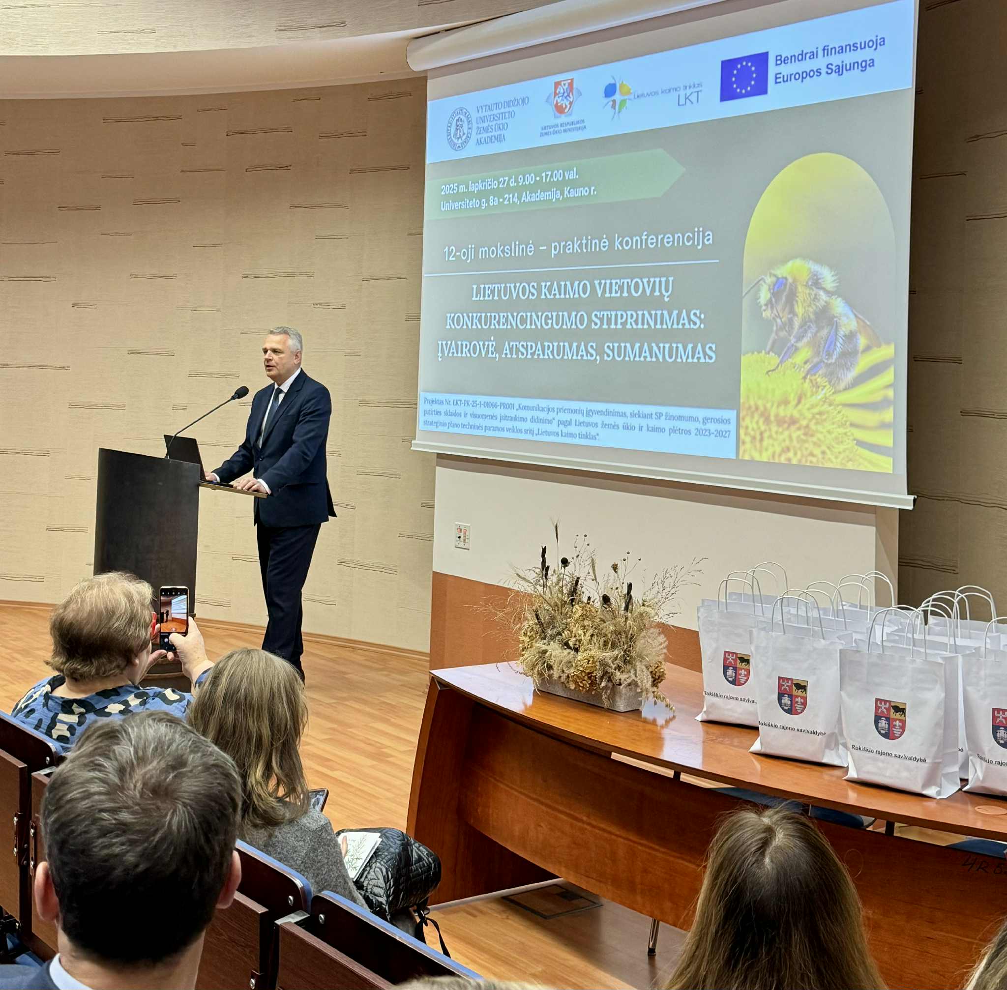 12-ąjį kartą organizuota mokslinė-praktinė konferencija „Lietuvos kaimo vietovių konkurencingumo stiprinimas: įvairovė, atsparumas, sumanumas“ kvietė ieškoti bendrų sprendimų, kurti partnerystes ir dalintis tiek mokslo įžvalgomis, tiek gerąja praktika iš skirtingų regionų ir sektorių.