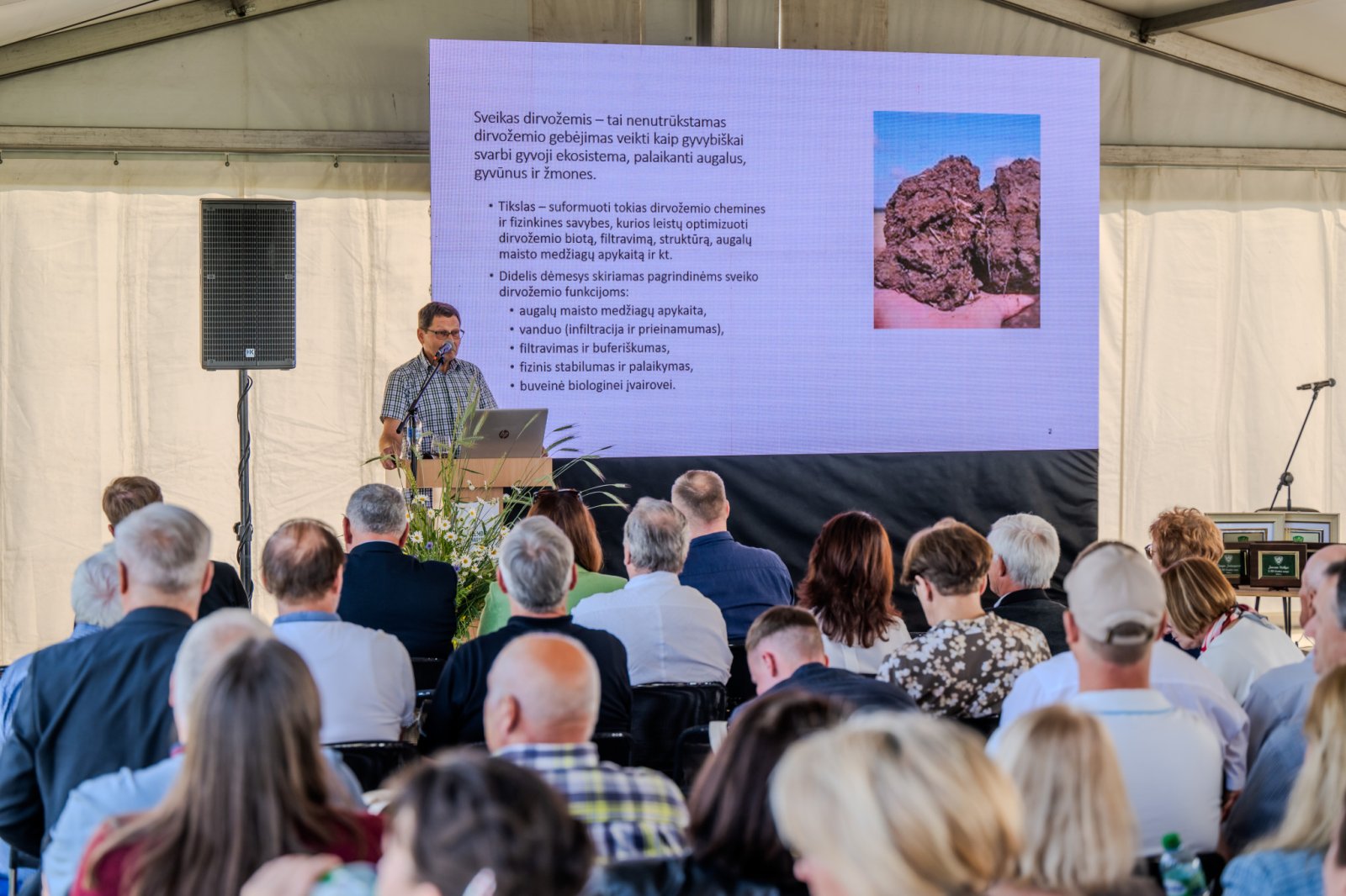 Apie organinės anglies kaupimą ir sveiko dirvožemio formavimą kalbėjęs prof. dr. V. Bogužas atskleidė kelis dešimtmečius atliekamų bandymų su skirtingomis sėjomainomis duomenis. Šie duomenys rodo, kokie procesai vyksta dirvožemyje, bei leidžia įvertinti pokyčius. Ilgiausiai vykdomam sėjomainų bandymui jau 57 metai ir jis tebetęsiamas. Jame yra 9 skirtingos sėjomainos, tarp kurių ir monokultūros, javų ir kt. Eksperimentuojant dirvožemio organika atkuriama įvairiomis priemonėmis – šiaudais, mėšlu, daugiamete žole. Anglies sukaupimas sėjomainose labai skiriasi, didesnis koeficientas ten, kur daugiau organikos sugrąžinama į dirvą. Kitas ilgametis bandymas vyksta nuo 1988 m. Nuo 2000 m. į jį įtraukta ir sėja į neįdirbtą dirvą. Duomenys rodo, kad mažiausios organinės anglies sankaupos – arimuose, o didžiausios – tiesioginės sėjos laukeliuose. Trečiasis ilgametis tyrimas vyksta nuo 2000 m. ir yra skirtas agroekosistemų tvarumo analizei.