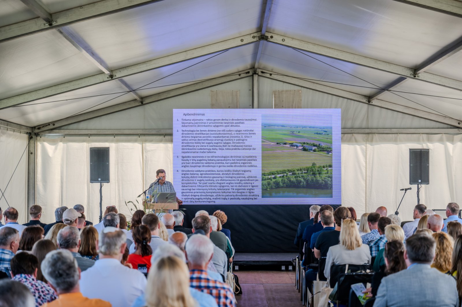 Vytauto Didžiojo universiteto Žemės ūkio akademijos (VDU ŽŪA) Bandymų stotyje birželio 5 d. įvyko jubiliejinė, 25 kartą rengiama mokslinė praktinė konferencija „Žemdirbio vasara“. Šiemet kartu tai buvo ir Lietuvos agronomų sąjungos (LAS) narių šventinis suvažiavimas. Todėl gausiai žemdirbių auditorijai itin aktuali šiųmetė mokslinės praktinės konferencijos tema „Technologinės inovacijos dabartinėmis ūkininkavimo sąlygomis“ organiškai jungėsi su LAS istorijos priminimu, agronomijos specialistų laukiančių uždavinių įvardijimu bei grupės LAS narių apdovanojimu.