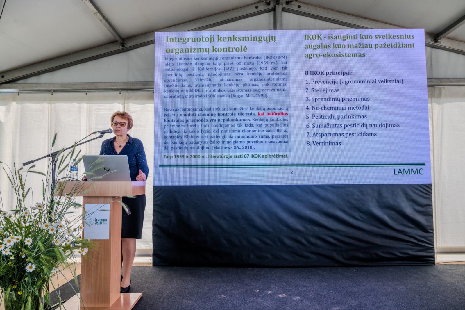 Apie integruotąją kenksmingųjų organizmų kontrolę (IKOK) kalbėjusi LAMMC Žemdirbystės instituto atstovė dr. Roma Semaškienė pasakojo, kad 8 pagrindinius IKOK principus Europos mokslininkai yra paskelbę 2011 m. „IKOK yra visuma, į kurią taip pat įeina ir sėjomainos, prevencija, stebėjimas, prognozavimas“, – kalbėjo dr. R. Semaškienė.