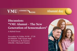 On Friday, November 14th, from 4 p.m. to 5.30 p.m., a hybrid discussion titled VMU Alumni – The New Generation of Sensemakers will be held online (via MS Teams) and on-site at VMU Senate Hall (28 S. Daukanto g., Kaunas). The discussion will take place on Vytautas Magnus University’s traditional Alum...