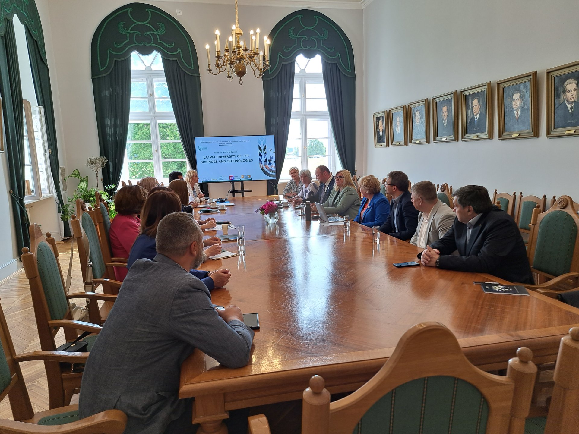 A delegation of leaders from the Vytautas Magnus University (VMU) Agriculture Academy, led by Chancellor Prof. Dr. Astrida Miceikienė, along with Vice-Chancellor Prof. Dr. Aušra Blinstrubienė, Head of the Administrative Group Dr. Laima Skauronė, Dean of the Faculty of Agronomy Assoc. Prof. Dr. Aida Adamavičienė, Dean of the Faculty of Bioeconomy Development Prof. Dr. Bernardas Vaznonis, Dean of the Faculty of Engineering Assoc. Prof. Dr. Rolandas Domeika, and Dean of the Faculty of Forest Sciences and Ecology Prof. Dr. Vitas Marozas, visited two strategic partner universities in June – the Estonian University of Life Sciences (EMÜ) in Tartu and the Latvia University of Life Sciences and Technologies (LBTU) in Jelgava.