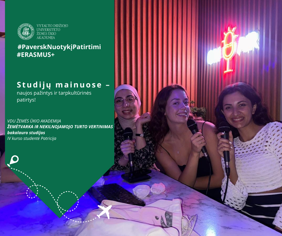 Svarstai išvykti pagal ERASMUS+, tačiau trūksta dar vieno žingsnio iki apsisprendimo? Paskaityk VDU Žemės ūkio akademijos studijų programos Žemėtvarka ir nekilnojamojo turto vertinimas ketvirto kurso studentės Patricijos Sasnauskaitės ERASMUS+ nuotykių ir įgytos patirties Turkijoje istoriją.