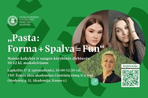 Vytauto Didžiojo universiteto Žemės ūkio akademija (VDU ŽŪA) 10–12 kl. moksleivius, besidominčius maisto kokybe ir sauga, kviečia į kūrybines dirbtuves „Pasta: Forma + Spalva = Fun“, kurios vyks lapkričio 17 d. 10:00–12:30 val. VDU ŽŪA Agronomijos fakultete. Kūrybinėse dirbtuvėse: – Gaminsime ypat...