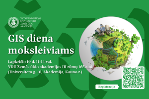 Minint Tarptautinę geografinių informacinių sistemų dieną Vytauto Didžiojo universiteto Žemės ūkio akademija (VDU ŽŪA) kviečia visus šalies 9-12 kl. moksleivius dalyvauti tradiciniame renginyje „GIS diena“, kuris vyks lapkričio 19 d. 11-14 val. VDU Žemės ūkio akademijoje (Akademija, Kauno r.). Reng...