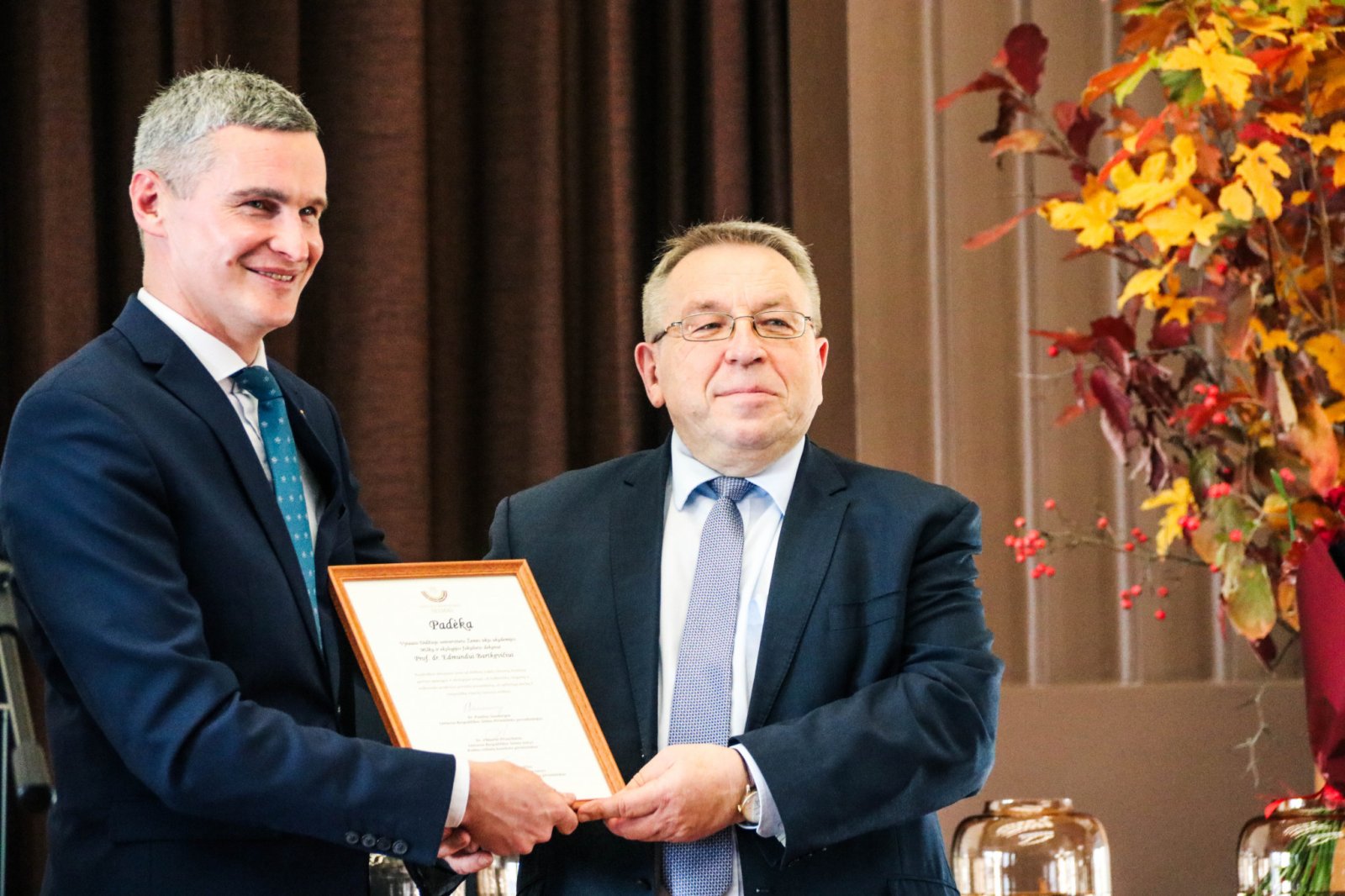 Seimo Kaimo reikalų komiteto pirmininkas prof. Viktoras Pranckietis kolegai E. Bartkevičiui linkėjo tvirtybės, o jo iki šiol vadovautam fakultetui – veiklos tęstinumo.