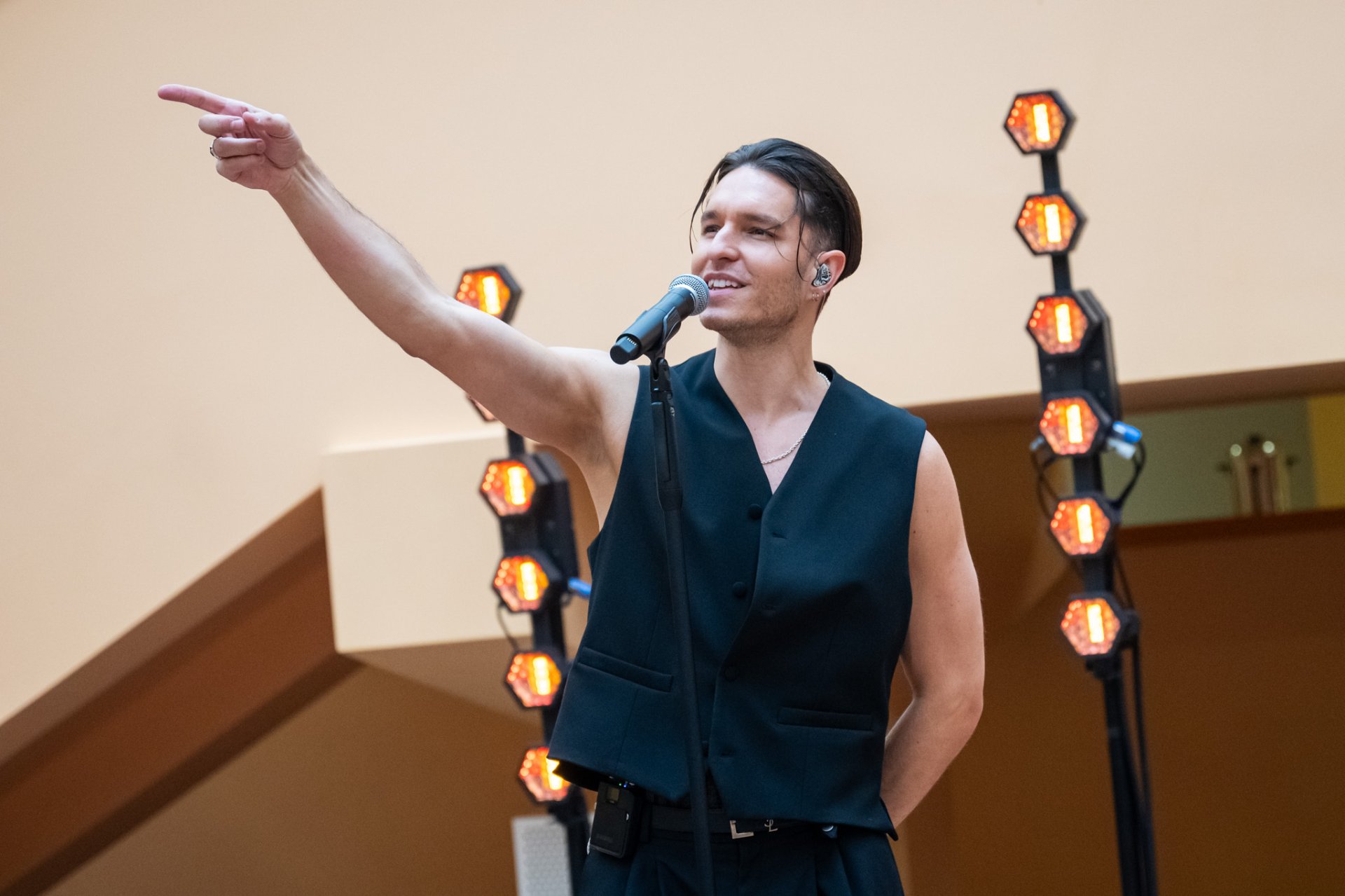 VDU ŽŪA Karjeros dienoje‘26 muzikinę energiją dovanojo atlikėjas Martynas Kavaliauskas, renginio programą praturtinęs koncertu.