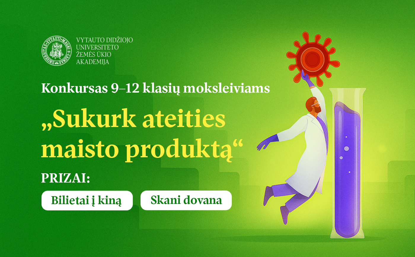 Vytauto Didžiojo universiteto Žemės ūkio akademijos (VDU ŽŪA) Agronomijos fakultetas kviečia 9–12 klasių moksleivius dalyvauti konkurse „Sukurk ateities maisto produktą“.