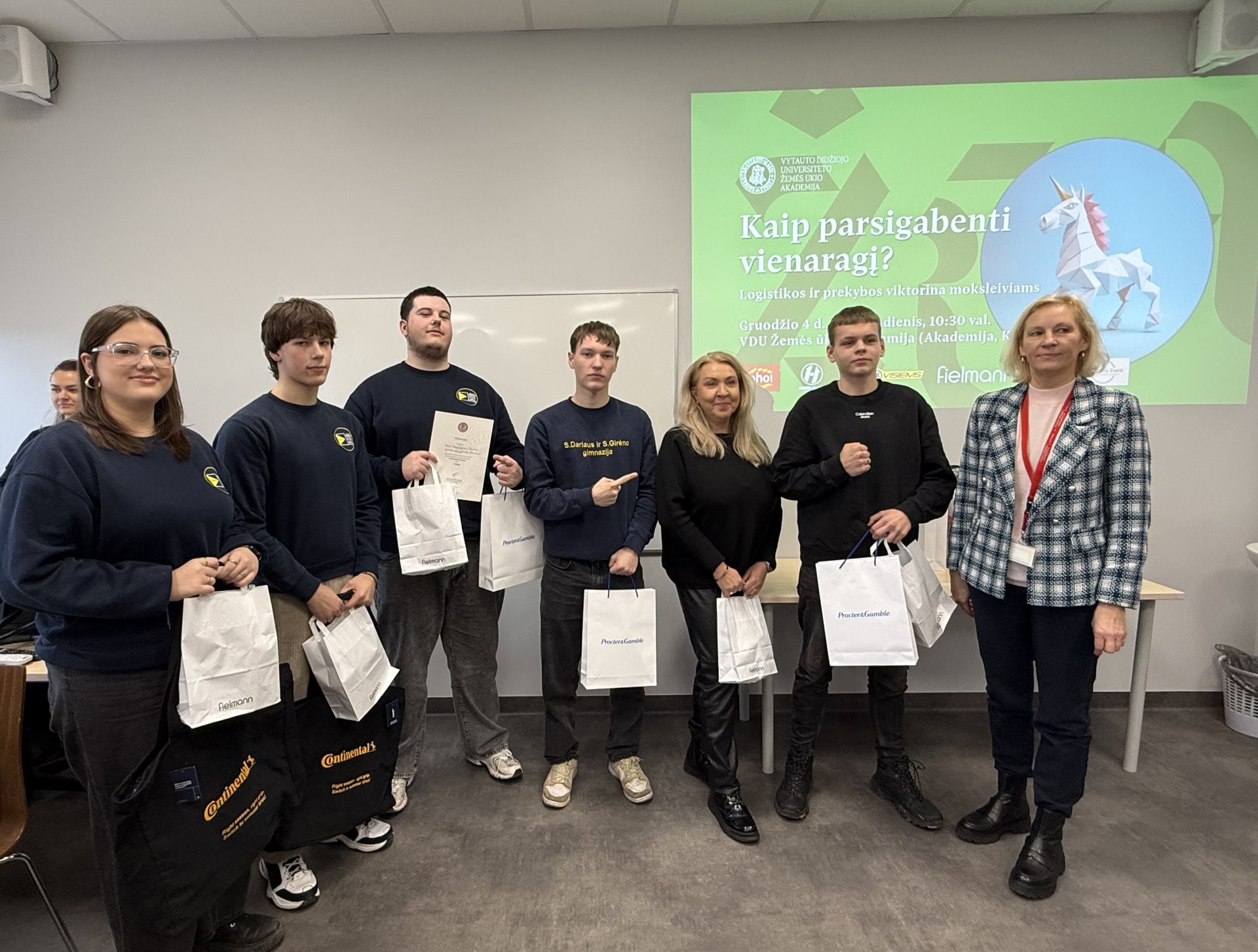 Gruodžio 4 d. Vytauto Didžiojo universiteto Žemės ūkio akademijos (VDU ŽŪA) Bioekonomikos plėtros fakultete, Verslo ir kaimo plėtros vadybos katedroje, vyko kasmetinė 11–12 klasių moksleiviams skirta Logistikos ir prekybos viktorina „Kaip parsigabenmti vienaragį?“.