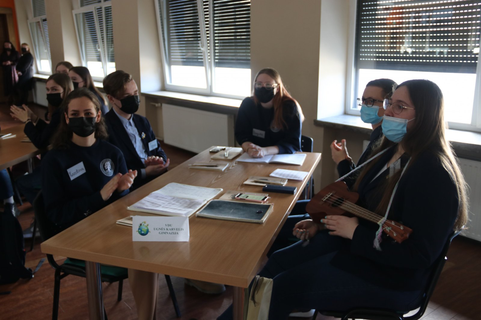 VDU ŽŪA kanclerės pavaduotoja prof. dr. Aušra Blinstrubienė sveikindama komandas linkėjo nestokoti ryžto ir kūrybingumo. „Be galo gera matyti jus čia – kukliai susibūrusius, bet džiaugsmingai nusiteikusius šiame dešimtajame konkurse „Mano pasaulis – darniai Lietuvai“, kuris skirtas kilniam tikslui atliepti. Maloniai kviečiu išmokti žvelgti į paprastą tarsi tai būtų nepaprasta. Išmokti žvelgti į tylą, tarsi ji skambėtų. Visuomet nepritrūkti jėgų juodoje spalvoje įžvelgti šviesą. Būkite smalsūs, žingeidūs, energingi ir veržlūs. Drąsiai ženkite žinių keliu, o pasiklydę nebijokite klausti. Tai darykite nestokodami laiko, ryžto, nuolat siekdami, kuriantys, nebijantys keistis, tikint, kad visi kartu mes kuriame Lietuvą, o tuo pačiu mes kuriame pasaulį. Pasaulį tokį, kokį norime matyti. Sėkmės jums“, – linkėjo A. Blinstrubienė.