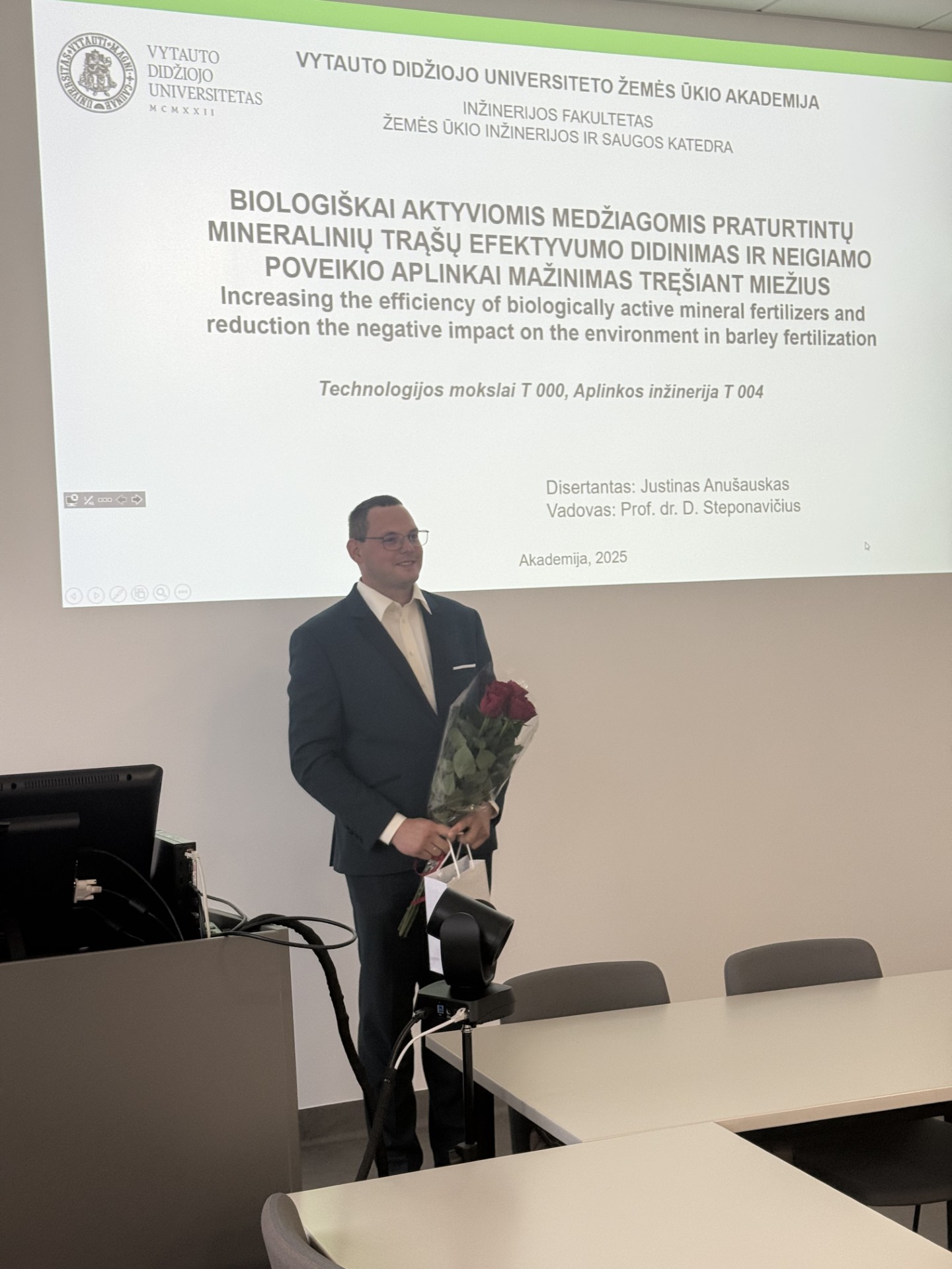 Sveikiname VDU Žemės ūkio akademijos Inžinerijos fakulteto Žemės ūkio inžinerijos ir saugos katedros doktorantą JUSTINĄ ANUŠAUSKĄ sėkmingai apgynus Technologijos mokslų srities Aplinkos inžinerijos mokslo krypties daktaro disertaciją tema: