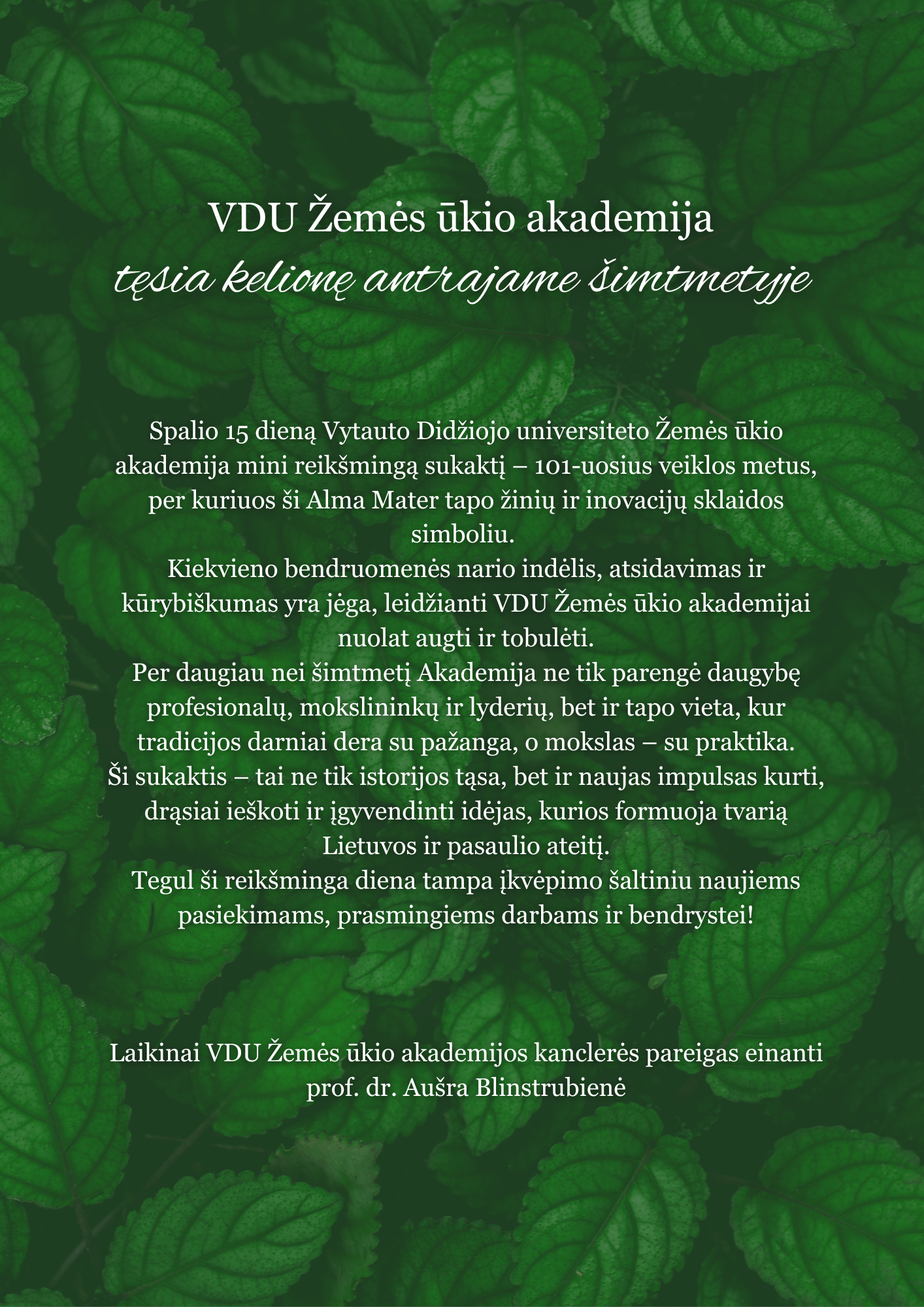 VDU Žemės ūkio akademija tęsia kelionę antrajame šimtmetyje