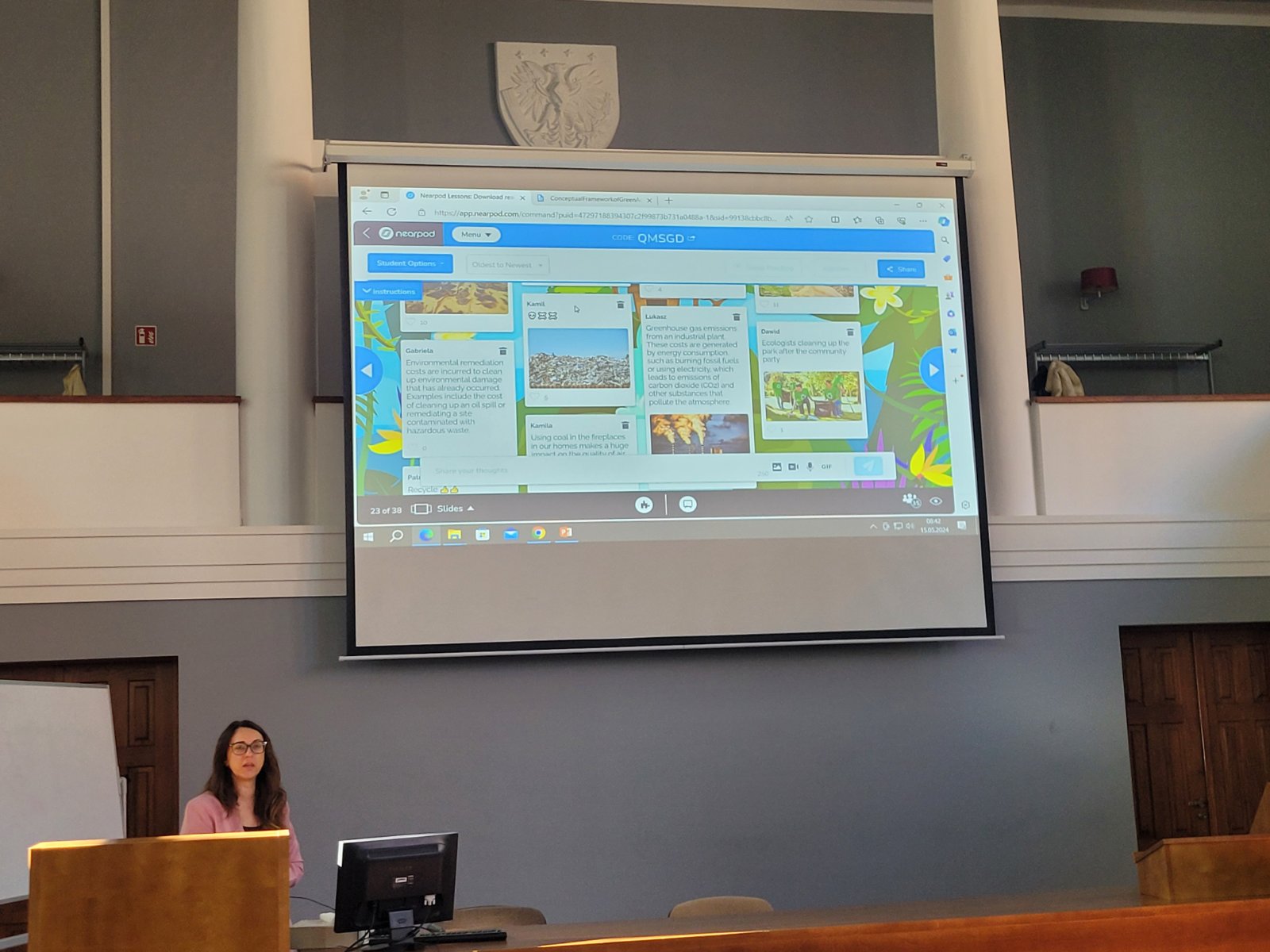 Doc. dr. Erika Besusparienė skaitė paskaitas apie Žaliąją apskaitą. Ji sutelkė dėmesį į Žaliosios apskaitos sąvoką ir jos integravimą į tradicinius finansinius ir vadovavimo apskaitos sistemas. Dr. E. Besusparienė pabrėžė problemą, kad aplinkosaugos išlaidos ir investicijos dažnai yra slepiamos bendrojoje išlaidų struktūroje, ir pabrėžė poreikį įmonėms atskirti šias aplinkosaugos išlaidas, siekiant tikslesnio ataskaitų pateikimo suinteresuotiesiems. Paskaitų metu dr. E. Besusparienė įtraukė studentus į diskusiją apie vidaus ir išorines aplinkosaugos išlaidas, naudodama praktinius pavyzdžius. Studentai naudodami interaktyvius įrankius pasidalijo įvairiais aplinkosaugos išlaidų pavyzdžiais, teikė pastebėjimus.