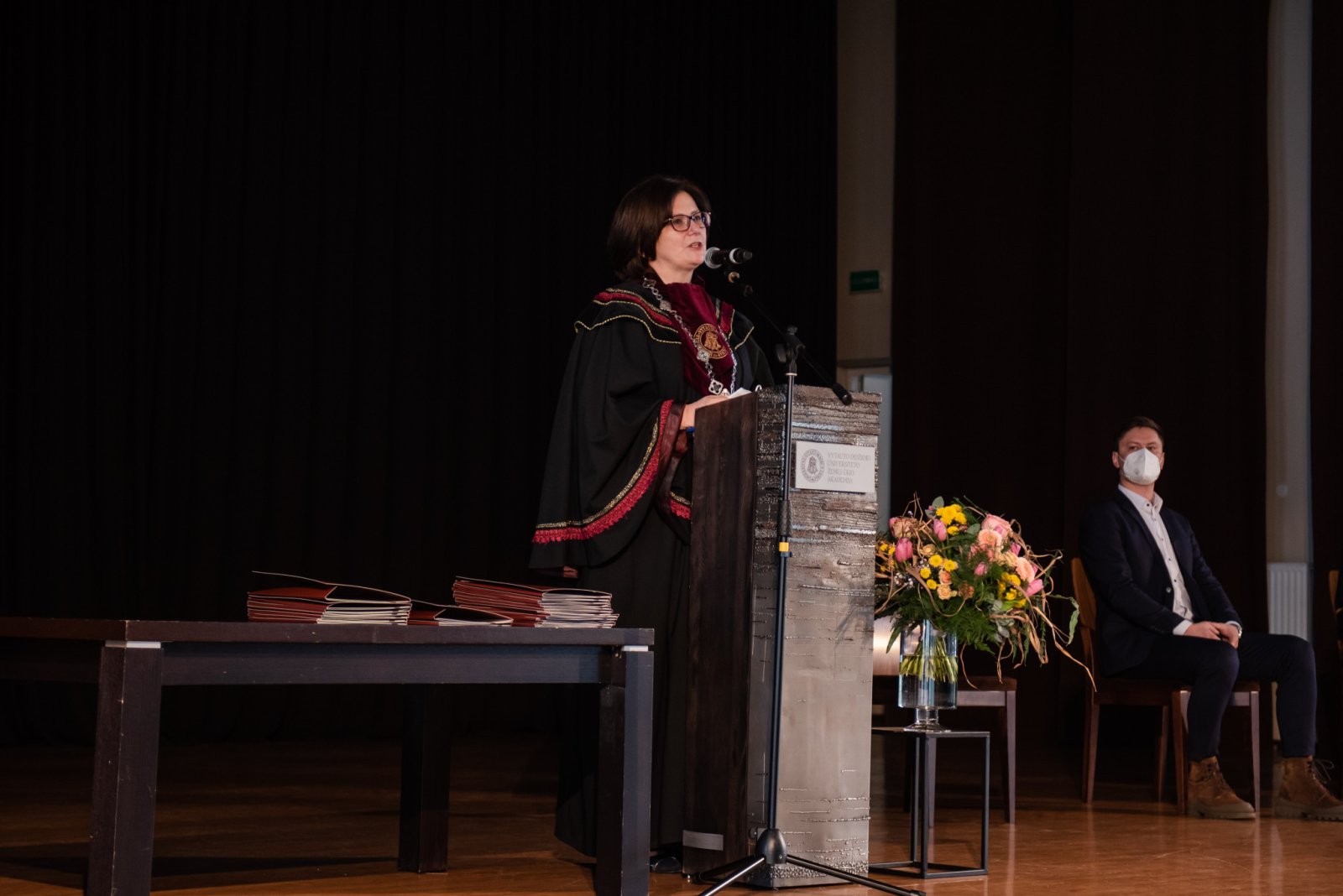 VDU ŽŪA Bioekonomikos plėtros fakulteto pirmosios pakopos nuolatinių ir ištęstinių studijų Apskaitos ir finansų studijų programos, pirmosios pakopos nuolatinių studijų Logistikos ir prekybos studijų programos, antrosios pakopos nuolatinių studijų Verslo logistikos studijų programos absolventams VDU rektoriaus prof. Dr. Juozo Augučio sveikinimo žodžius perdavusi renginio vedėja, fakulteto mokslinės ir projektinės veiklos koordinatorė doc. dr. Anastasija Novikova kalbėjo: „Diplomų įteikimo ceremonija – ypatingas reiškinys. Į šią akimirką sutelpa daug dėmenų: visų metų ryžtas ir užsispyrimas, kartais aplankęs netikrumo ar nepasitikėjimo jausmas. Ir galiausiai – pergalė, kurią lydi naujo etapo, naujo žingsnio jaudulys.“