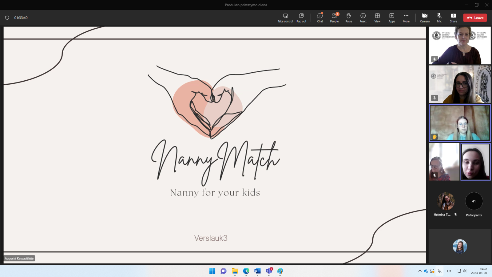 Įmonė „Verslauk3” įvertino, kad šiais įtemptais laikais vienas svarbiausių klausimų yra vaikų priežiūra, kuri reikalauja vis daugiau dėmesio ir rūpesčio – tėvai apkraunami darbų gausa ir vaikams nėra galimybės skirti tiek laiko, kiek norėtųsi. Tuomet ieškoma, kas galėtų prižiūrėti vaiką. Studentai, įkūrę įmonę teigia, kad yra būdas palengvinti trumpalaikės auklės paiešką – išeitis galėtų būti profesionali, kvalifikuota ir greitai pasiekiama auklė, kuri pagal poreikį atliktų ir kitus darbus. Studentų įmonė siūlo patikimą ir saugią skaitmeninę platformą „NannyMatch“ – naują programėlę, kurioje tėvai gali lengvai rasti ir samdyti kvalifikuotas aukles. Programėlėje siūlomos tik kruopščiai atrinktos auklės, praėjusios kelių etapų atranką, kad būtų maksimaliai sumažinta rizika, atsirandanti priimant į namus ir šeimą svetimą žmogų. Programėlėje pateikiama pagrindinė informacija apie auklių reputaciją ir užimtumą, galima rasti atsiliepimus, vertimus ir priimti gerai apgalvotą sprendimą.