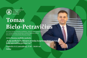 Kviečiame dalyvauti atvroje paskaitoje-seminare „Kaip pasikeis II pakopos pensijų kaupimas 2026 metais. Kokį sprendimą priimsi tu?“, kurį ves Tomas Bielo-Petravičius, AB Artea banko Finansų analitikas, Artea banko darbuotojų vyr. kompetencijų mentorius, turintis ilgametę patirtį investavimo ir asmen...