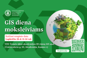 Minint Tarptautinę geografinių informacinių sistemų dieną Vytauto Didžiojo universiteto Žemės ūkio akademija (VDU ŽŪA) kviečia visus šalies 9-12 kl. moksleivius dalyvauti tradiciniame renginyje „GIS diena“, kuris vyks lapkričio 19 d. 11-14 val. VDU Žemės ūkio akademijoje (Akademija, Kauno r.). Reng...